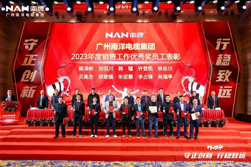 2024年1月27日,广州南洋电缆集团有限公司在广州长风凯莱酒店举行了以“守正创新、行稳致远”为主题的2023年总结表彰大会暨2024年迎春晚会。董事长郑汉武、总经理章先杰、各区域销售经理及经销商、公司管理层及各部门员工共计800余人参加本次大会。